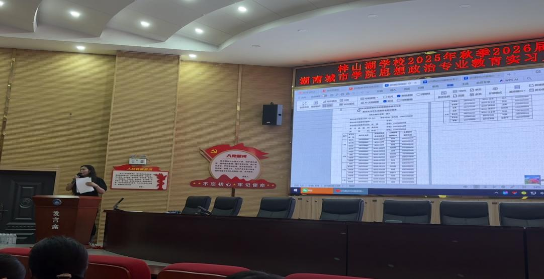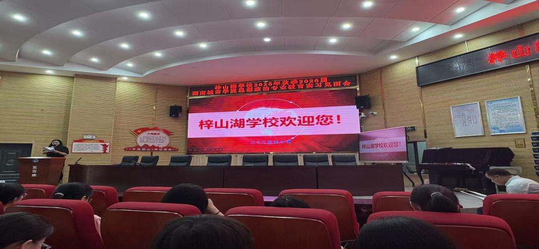 (通讯员 李讯)2025年10月9日上午,我院2022级思想政治教育专业第一、二、三实习组与梓山湖学校相关教师举行见面会,在梓山湖学校多功能报告厅举行。思政课研究室主任陈蒋主持见面会,梓山湖学校副校长符琴、教导主任叶浩、具体指导学生实习的有关班主任和思政课教师出席,学院教育实习组全体师生参加。