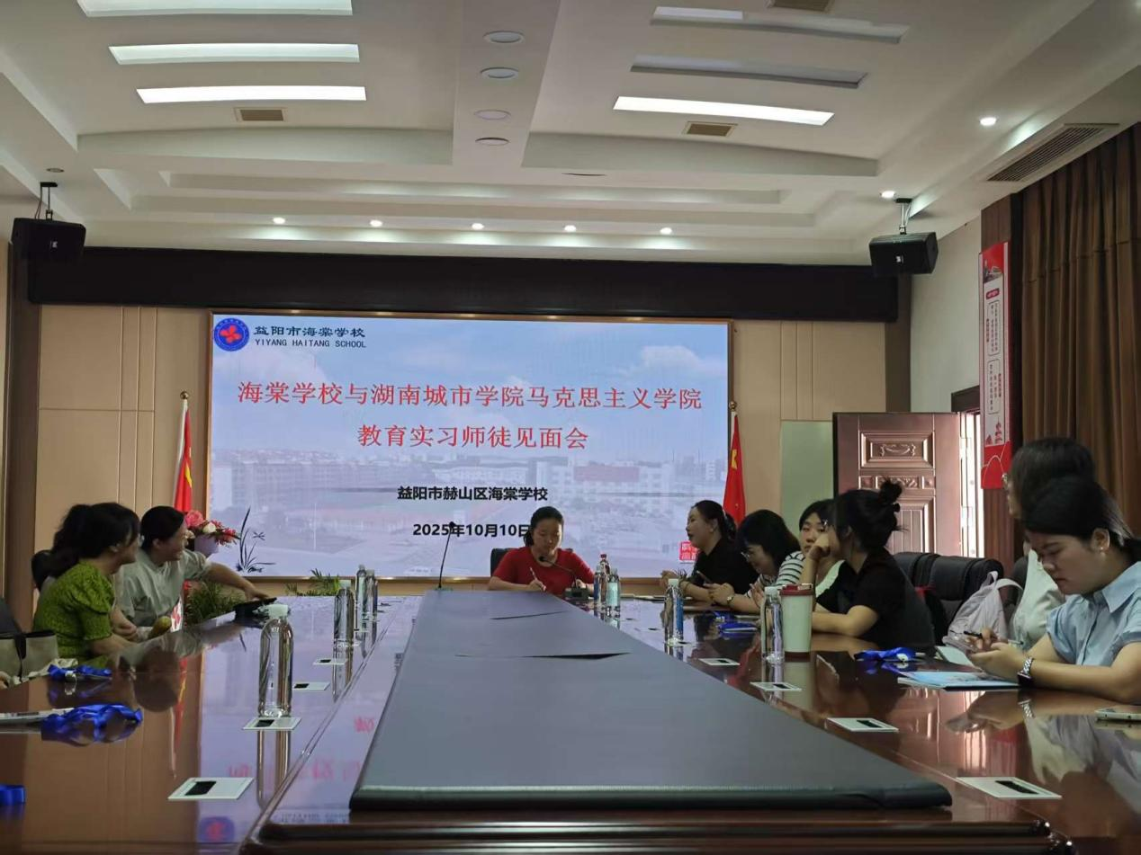 (通讯员 何越)2025年10月10日,我院2022级思想政治教育专业实习组正式进驻海棠学校。进驻见面会在海棠学校会议室举行。海棠学校政治教研室主任肖习知主持见面会,海棠学校教导主任蔡亚、负责具体学生实习指导的政治教师出席,我院教育实习实习组全体师生参加。